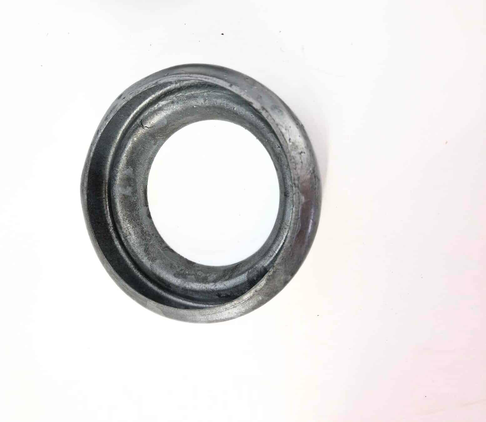 Der Becher S3, ein ringförmiges Metallobjekt mit glatter, leicht abgenutzter Oberfläche, steht auf einem weißen Hintergrund.