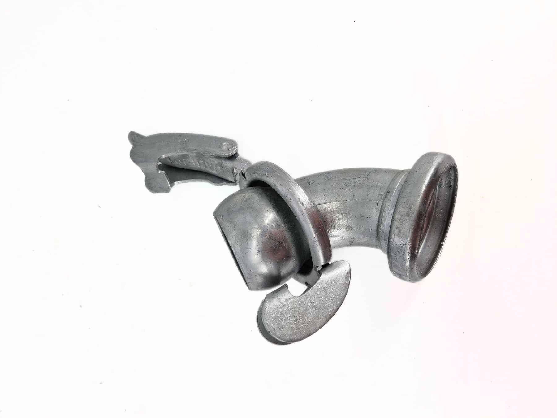 Der Bogen S12 60° Bauer ist eine Metallrohrverschraubung mit gebogenem Körper und aufgesetzter Gelenkschelle, abgebildet auf einem schlichten weißen Hintergrund.