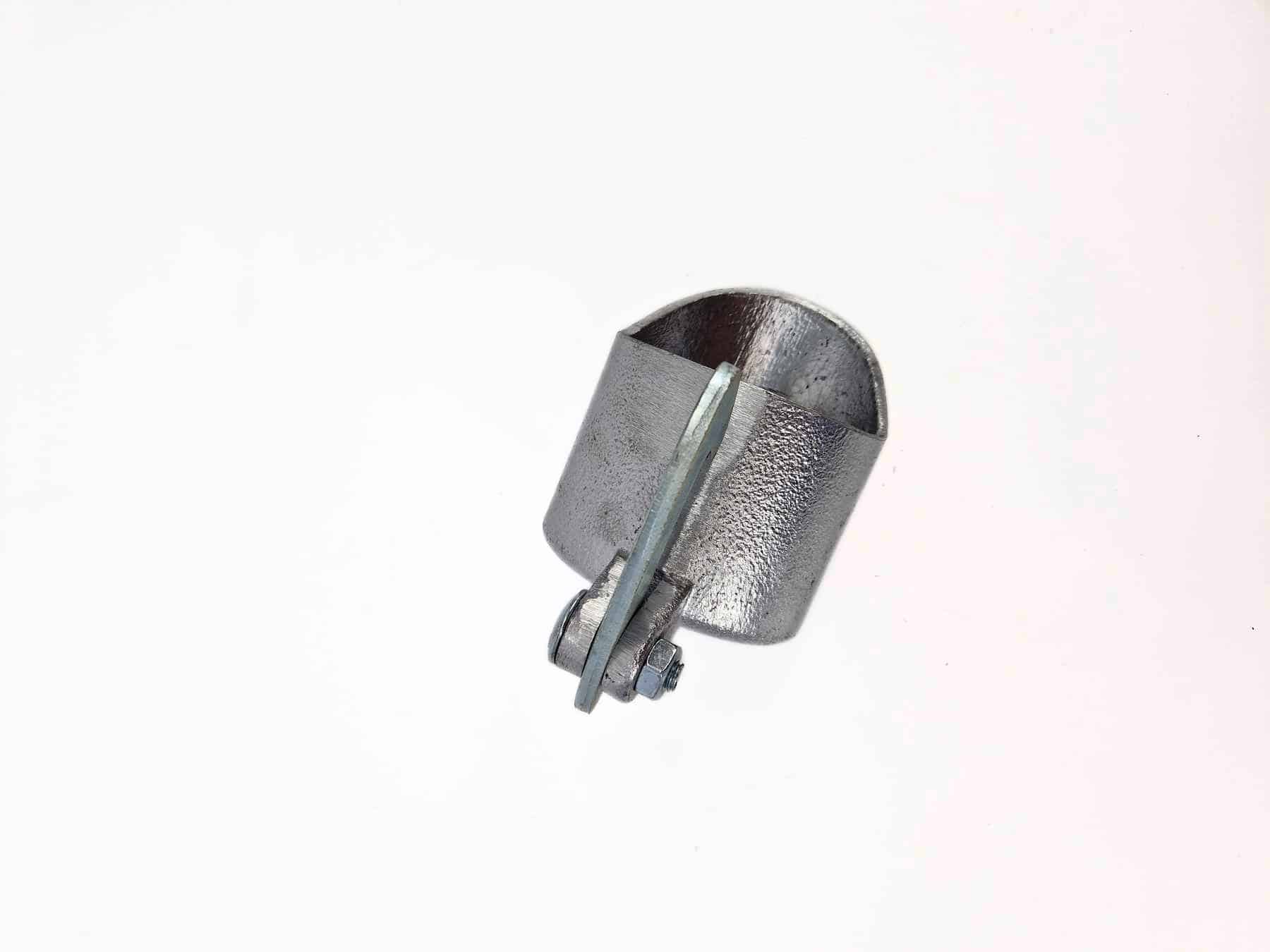 Die Endkappe Aldoma Aluminium für Hakenverschluss ist eine Aluminiumkappe mit abgerundetem Ende für Hakenverschlüsse, die auf weißem Hintergrund dargestellt ist.